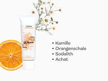 - enthält eine Komposition aus den ätherischen Ölen Kamille und Orangenschale und den Mineralsteinpulvern Sodalith und Achat